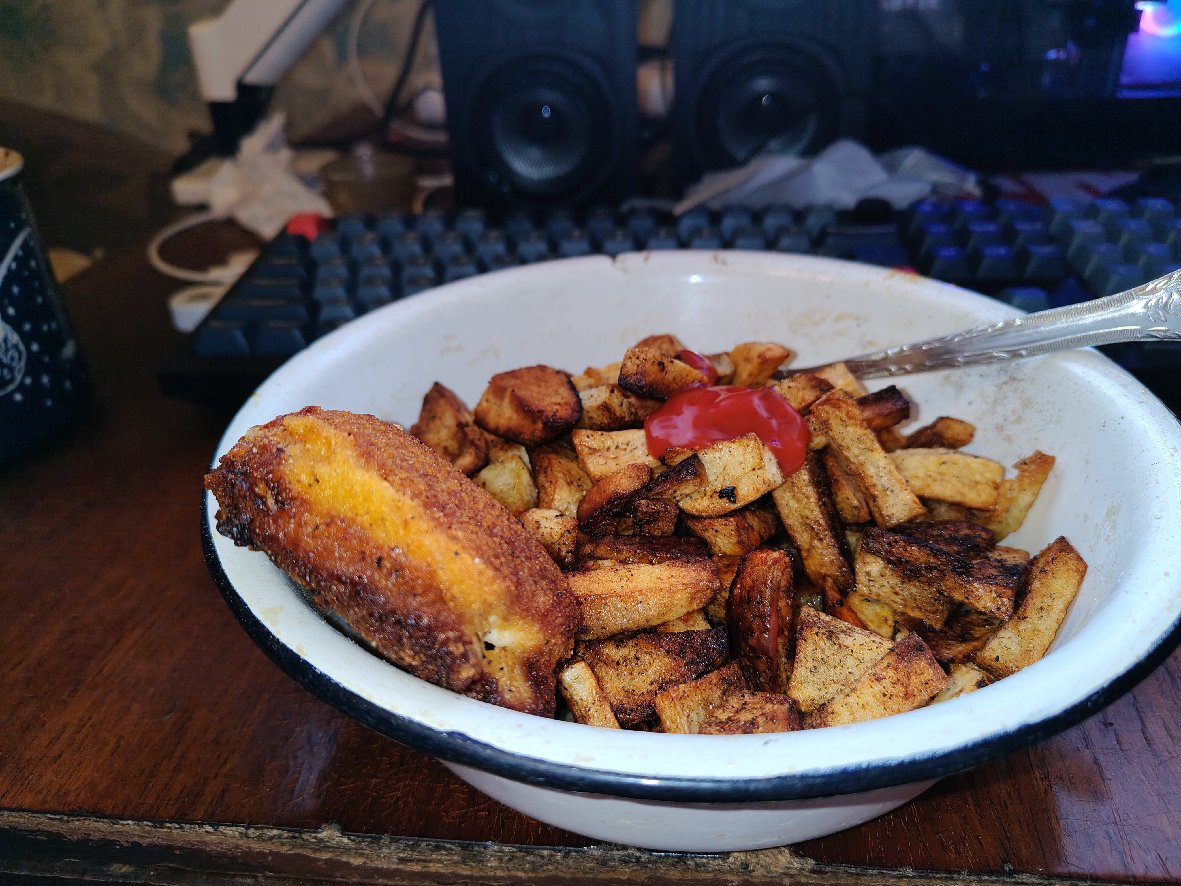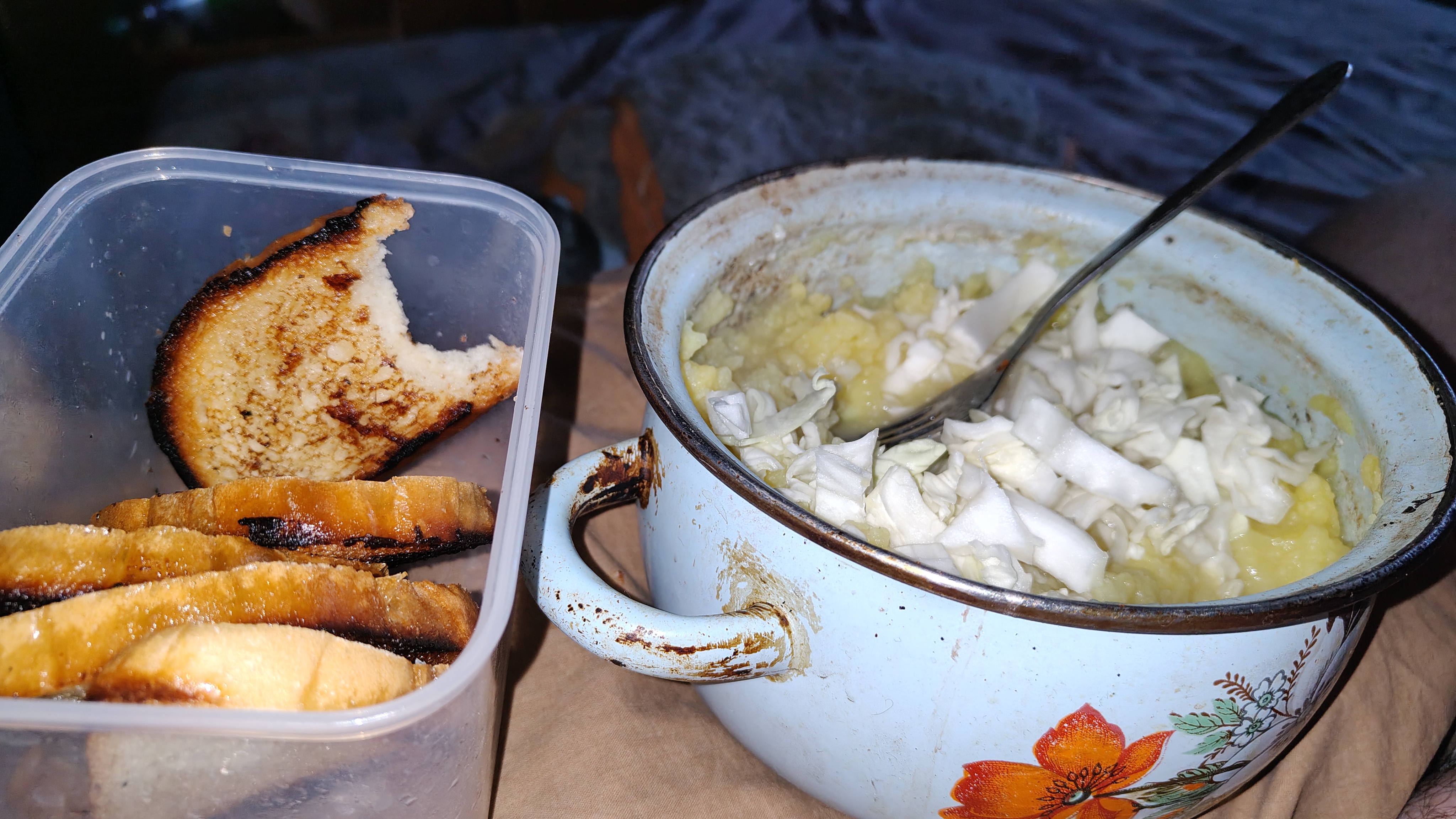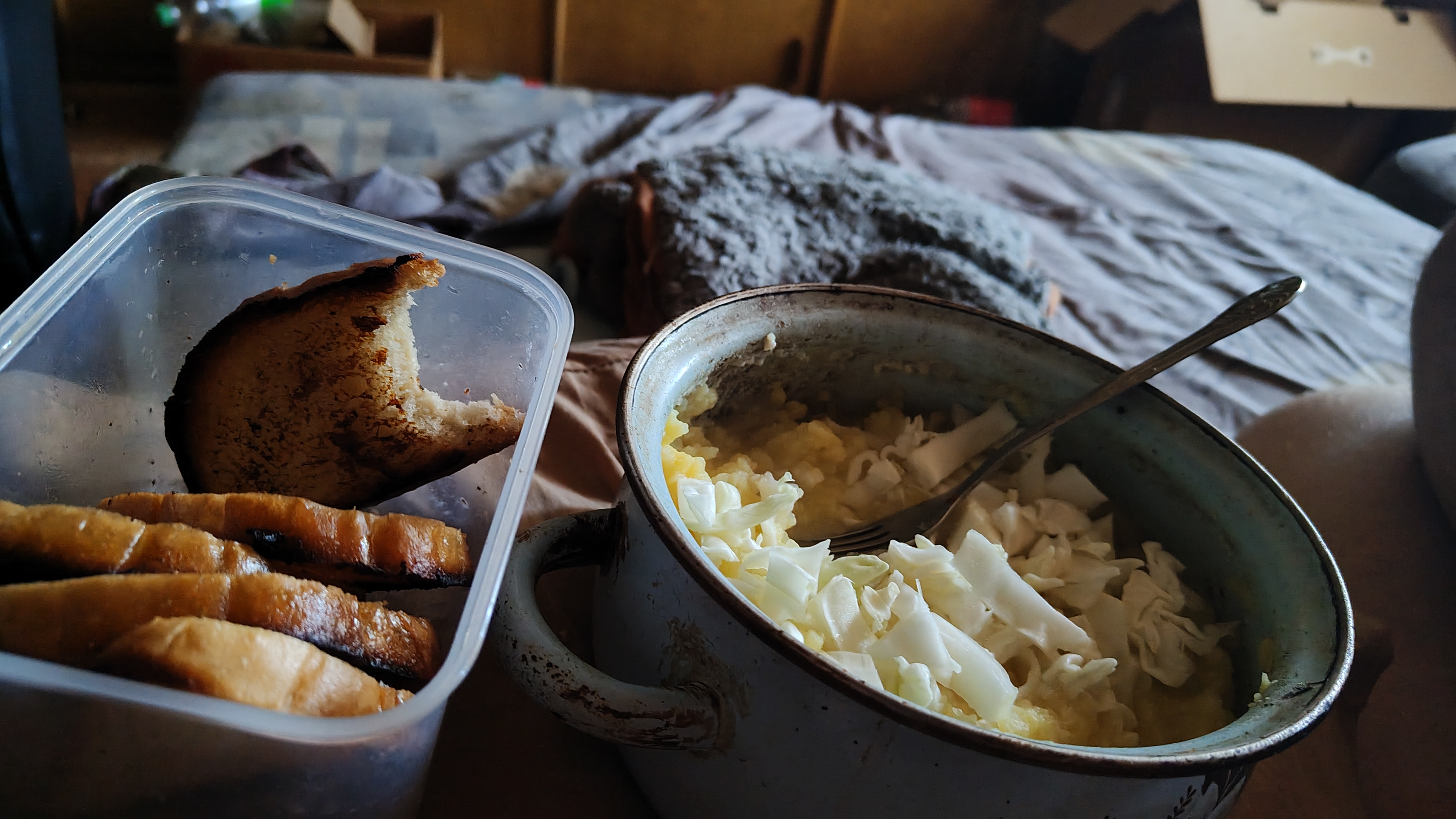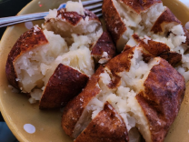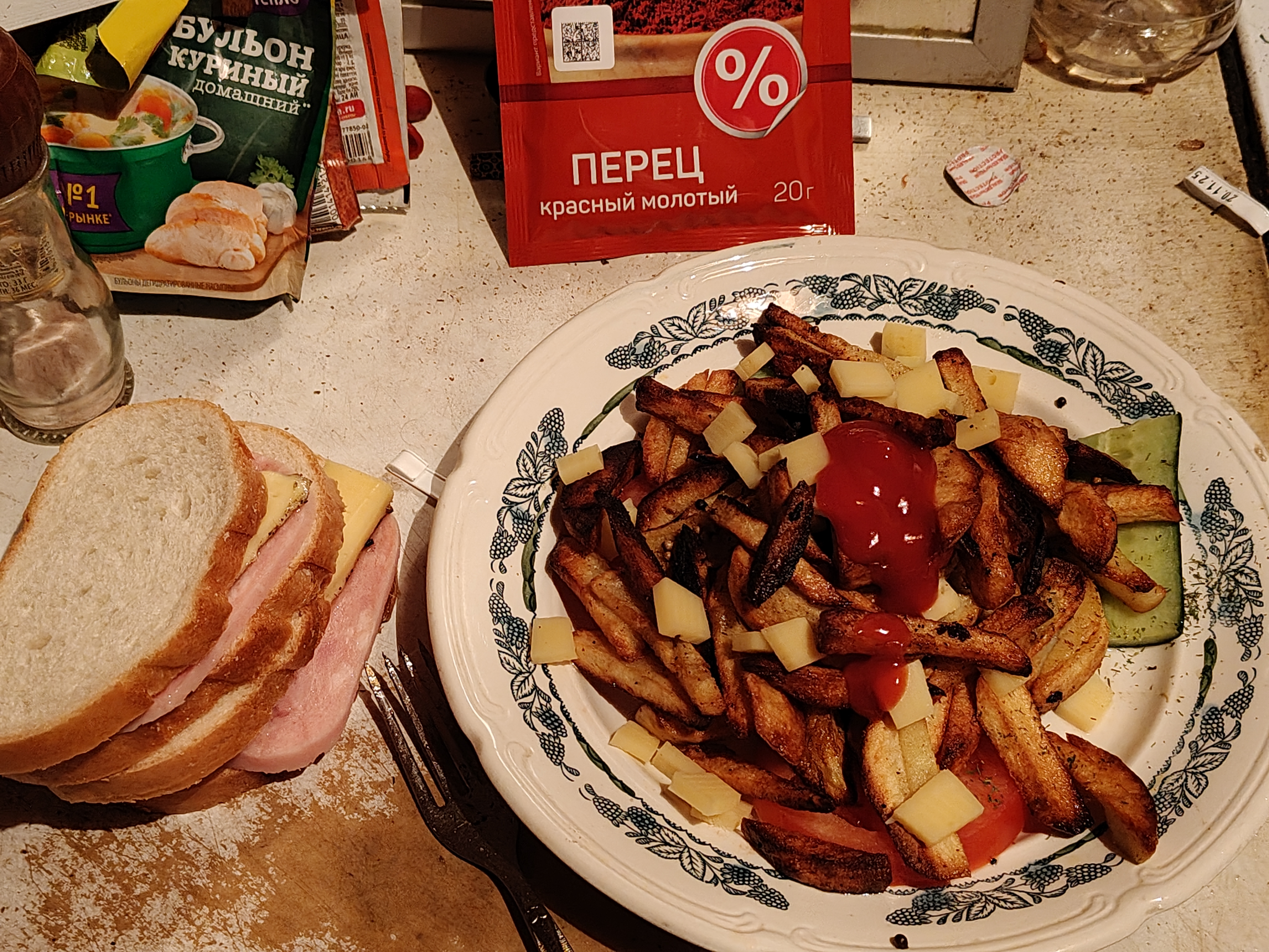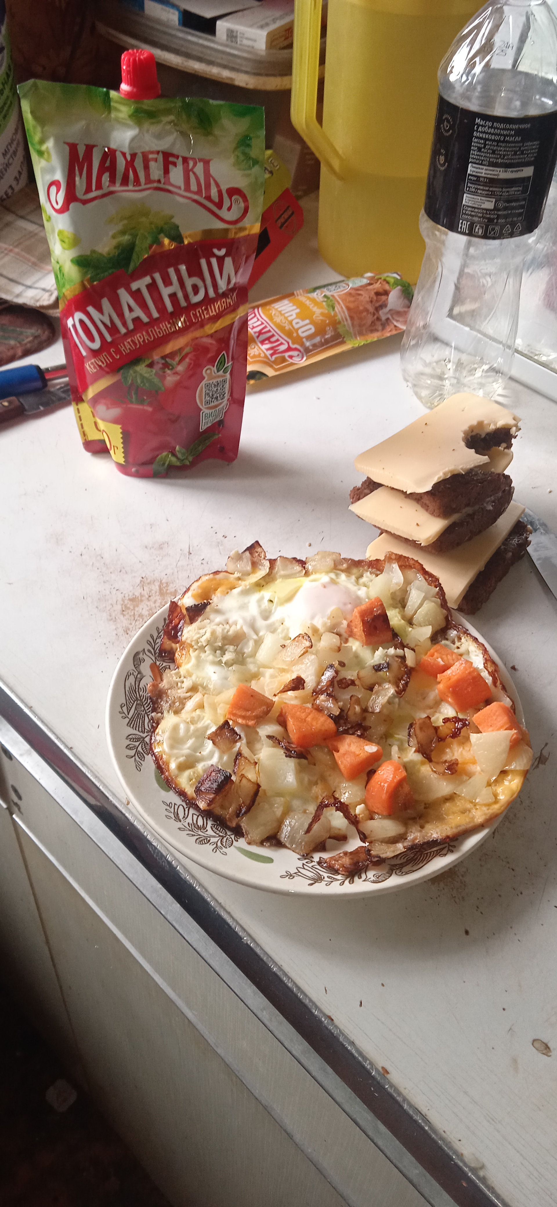 I boiled potatos in cheese griller, sprinkled a random spice on them. Forgot to take a photo