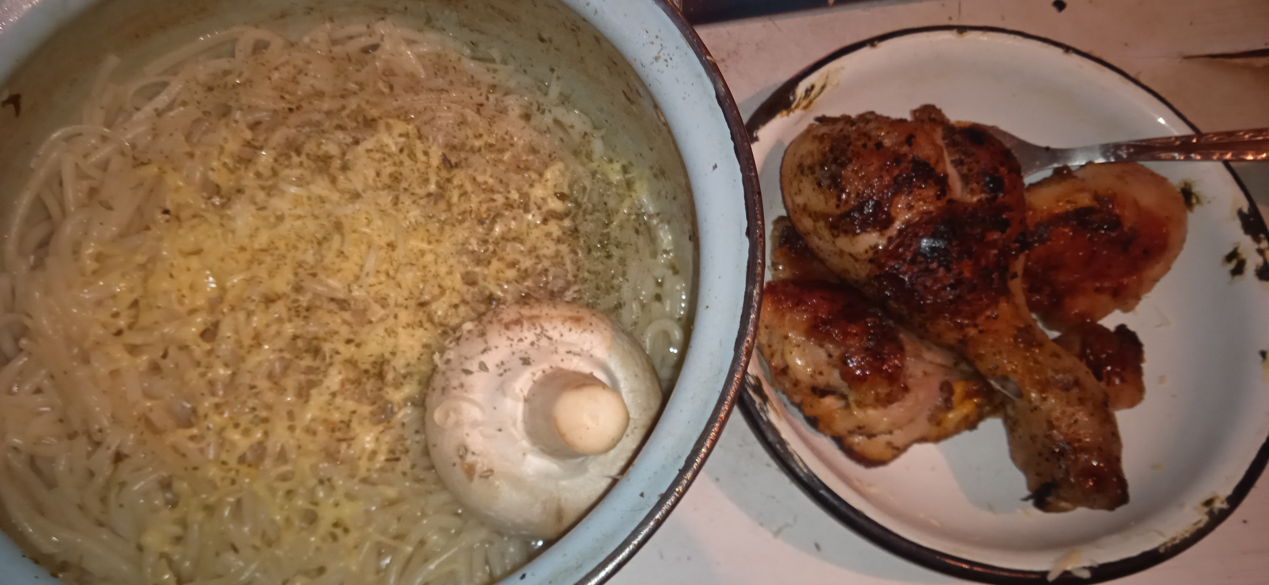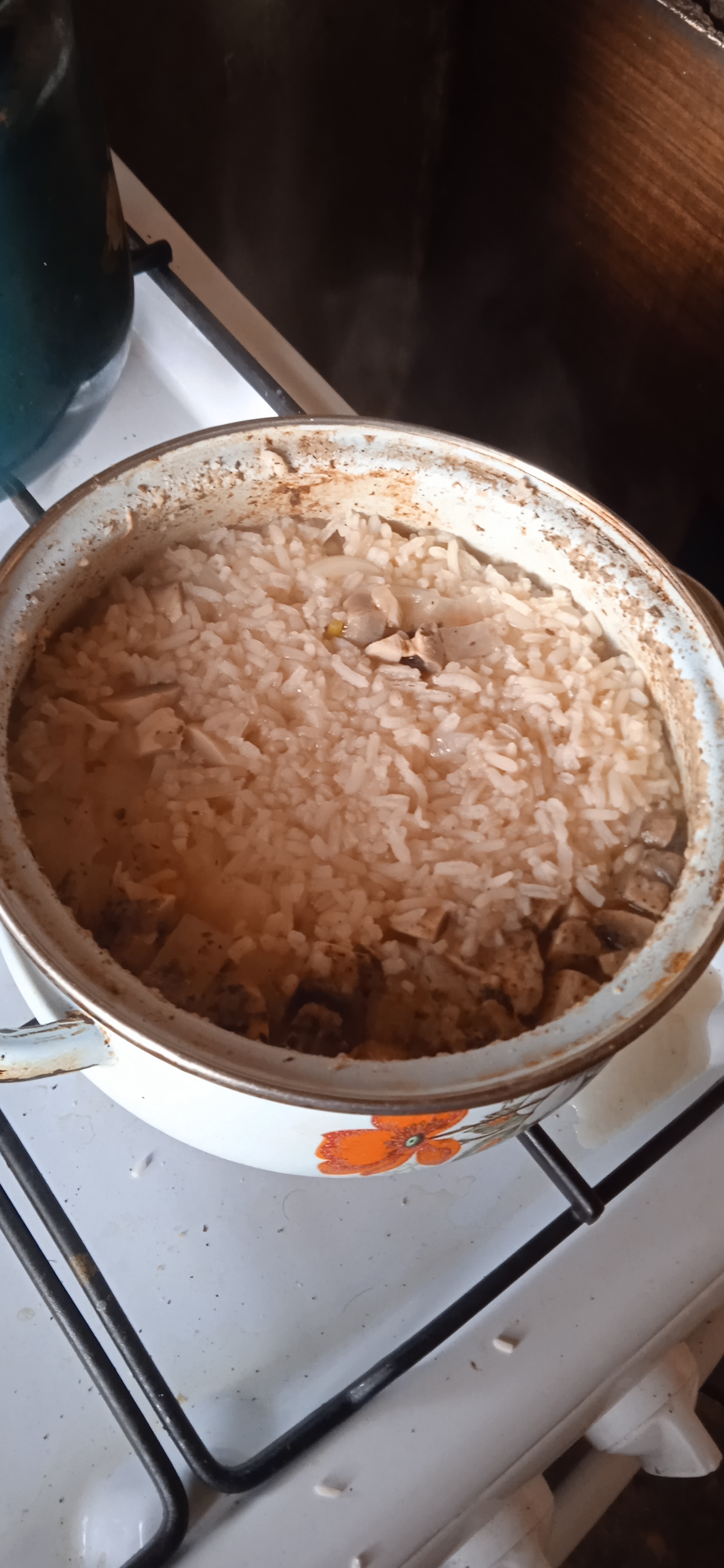 >>165387It's rice with mushrooms, chicken, onions, carrots and stuff like oregano. The thing on the upper part of this kastryulya is oregano and probably some cockroach poop. I wash it twice in it week because i dont really like to do it all the time.