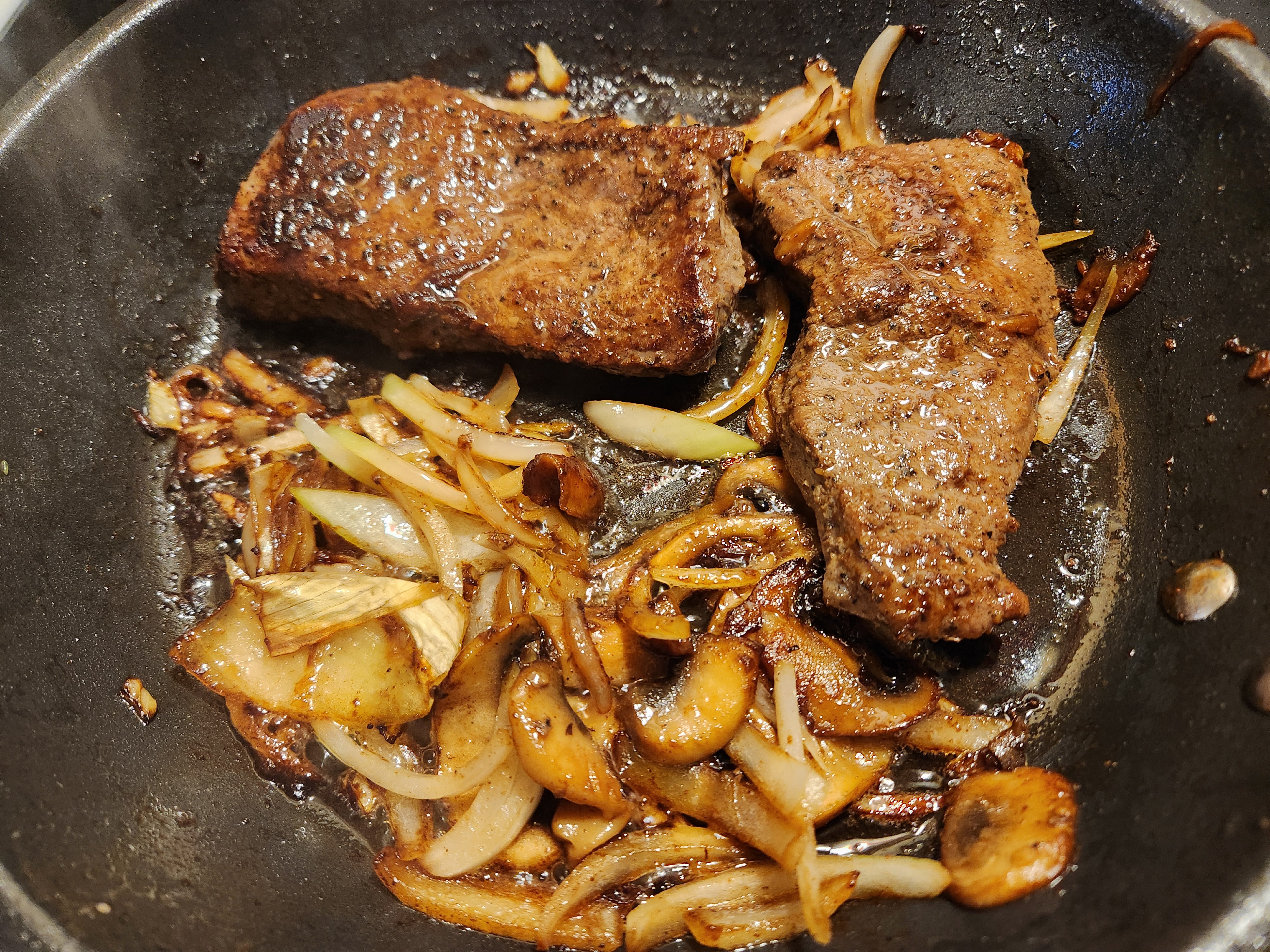 They're always gonna be pretty elastic, and mushrooms don't generally have much bite at all, but what I was talking about was avoiding making them straight up mushy. The tldr is that shrooms in the pan are actually really resilient and it's pretty difficult to overdo mushrooms especially if you're cooking with oil so don't be scared of them and really give them the Jewish treatment on like medium-high heat. I literally cooked one of my steaks and was halfway through the other one by the time the mushrooms were done and they came out pretty nice