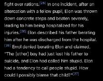 >>250280Elon was right. His severe autism allowed him to see the base emotional impulses of his simple-minded peer for what they really were: irrational emotionality, devoid of logic or reasoning. Sadly, this world is, like a pack of apes, ruled by brutes who react in the only way an ape knows how, violence, when confronted by the enlightened and gifted. Elon was right to say whatever he said, which can be reasonably deducted to have been a benevolent nudge in the direction of logic and stoicism towards the emotionally distraught ruffian.