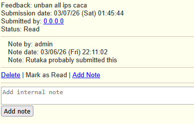I added this anonymous feedback page that lets you input a comment about anything such as a site feature being broken or a feature request or anything under the sun