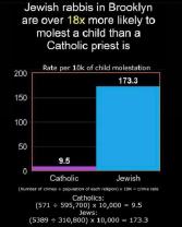 3.2 per 10,000. In other words, according to this graph's own numbers for Catholic Child Molestation, your kids are 34% more safe among Haredi Jews than they are among Catholics.
