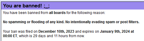 >>6298I meant for the ban to be one hour long wtfwt