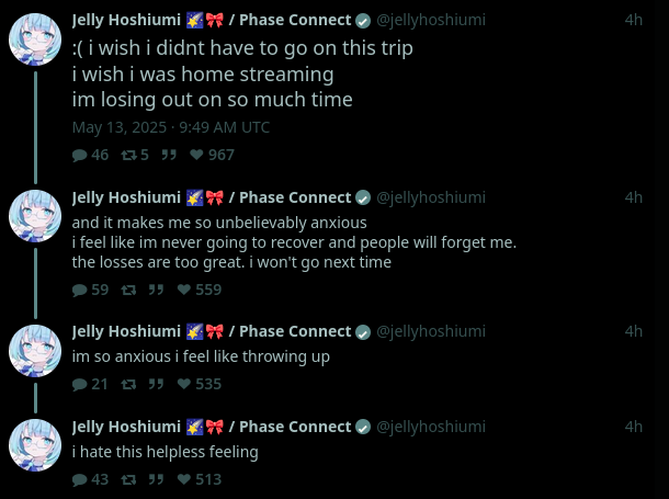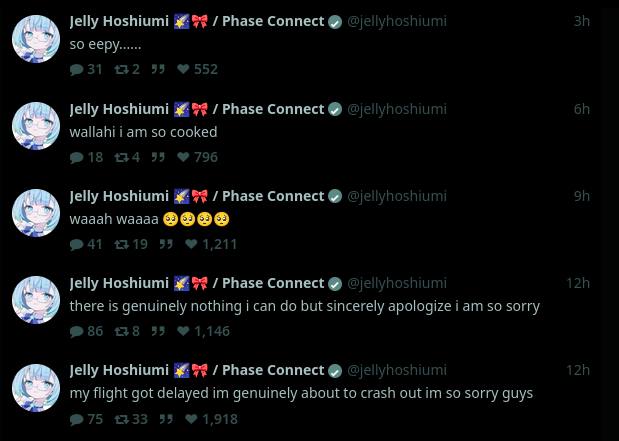 I like her because she plays programming games, factory games, and puzzle games. She also makes a music (composition, production, lyrics, and singing) but I don't really like vtuber music. She made some of the BGMs for the phase connect vtubers.