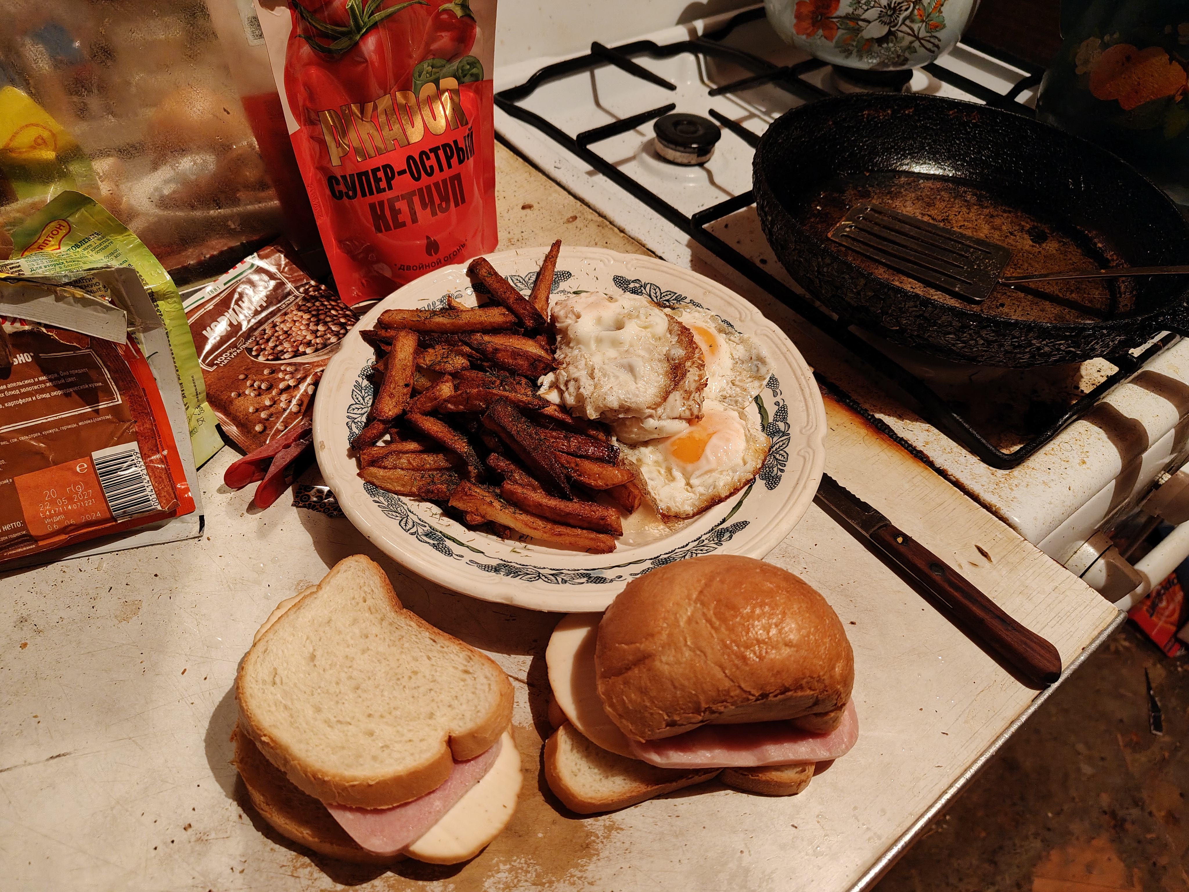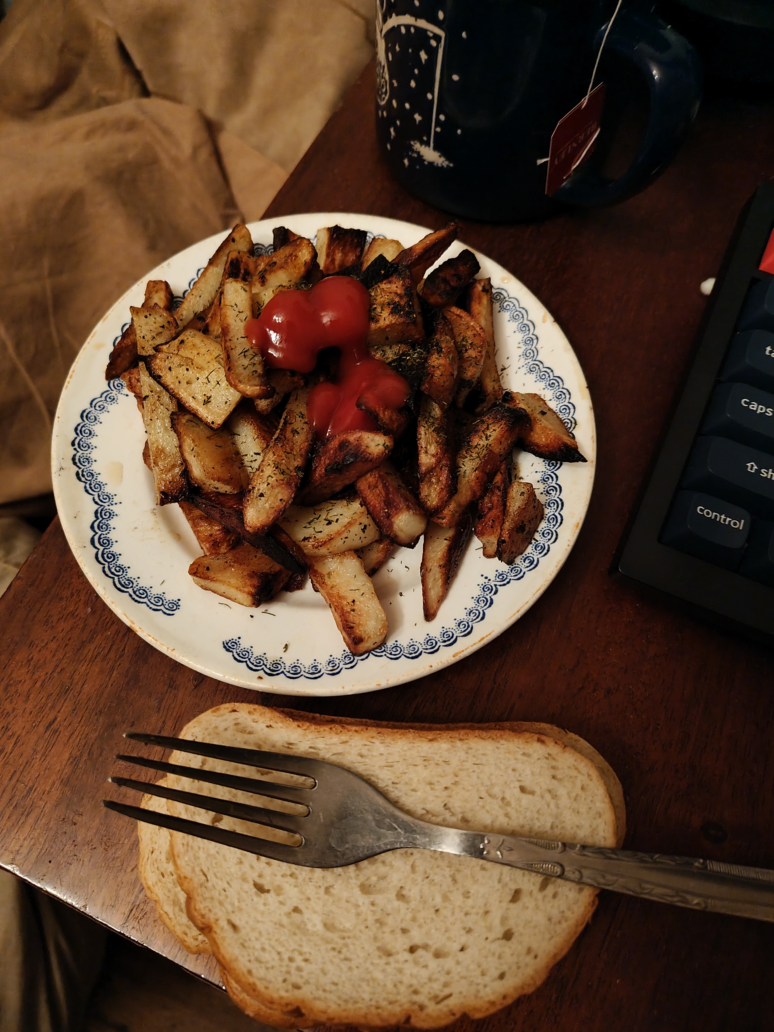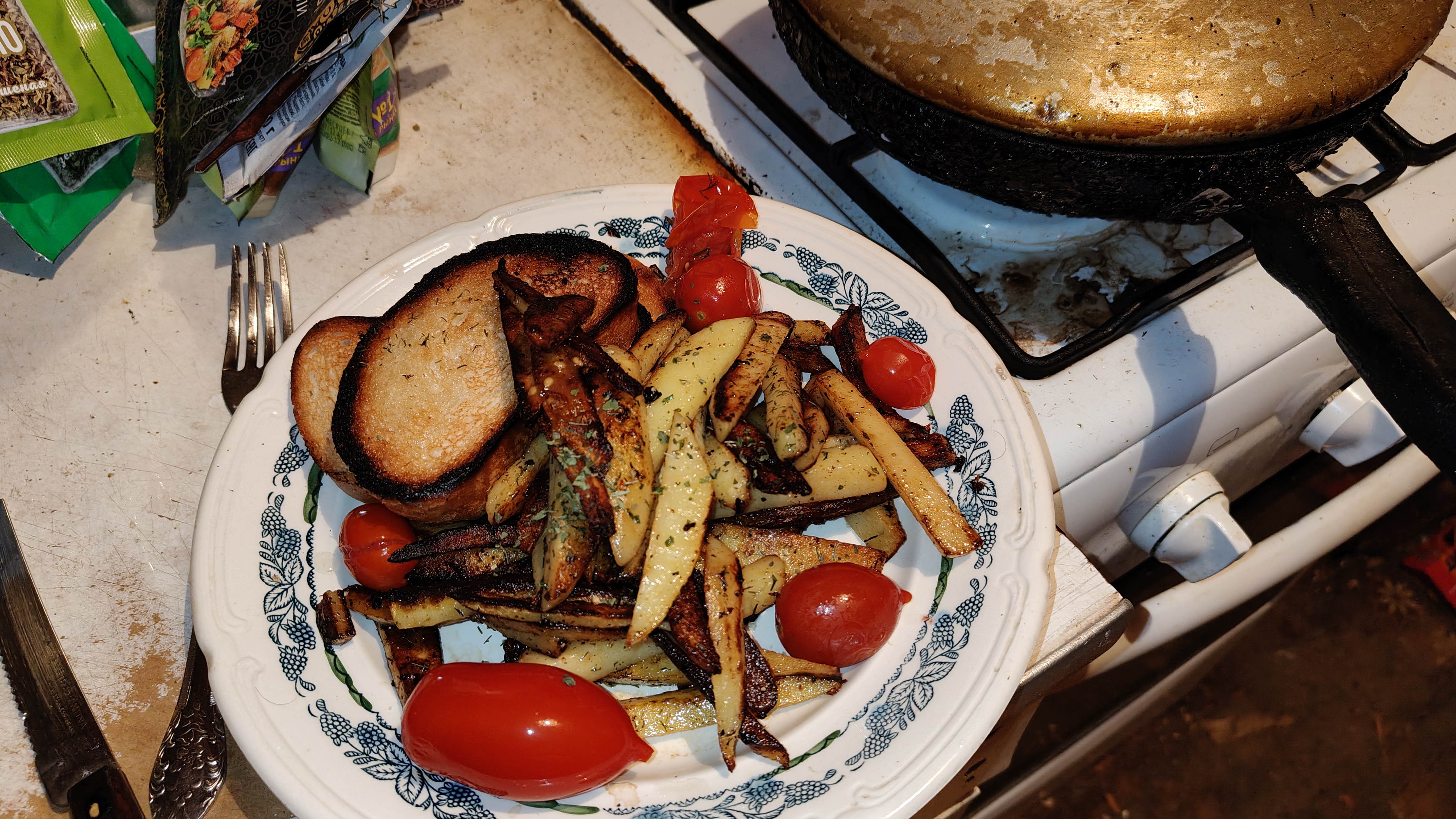I boiled potatos in cheese griller, sprinkled a random spice on them. Forgot to take a photo