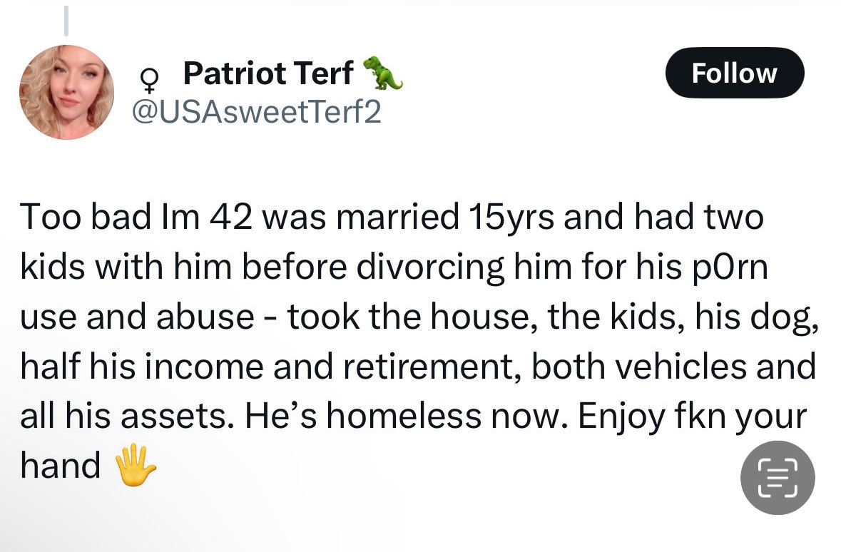 I hope this is a troll because if it isn't you need mental help, you say things like this and post gore and act like it's some epic win against women as a cohort and then wonder why you have no friends. It's creepy.