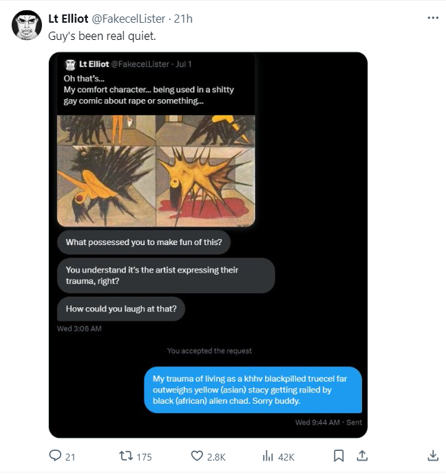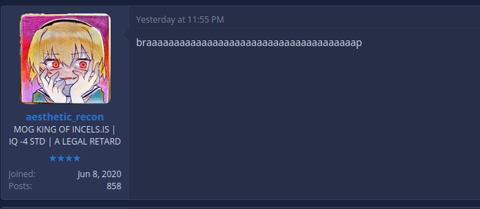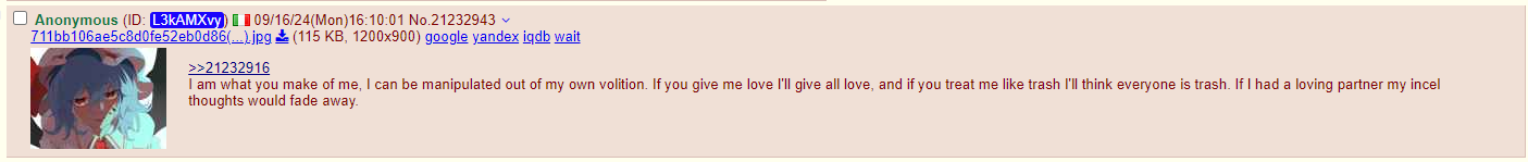 >>32159This was never an actual argument as much as it was me looking further into him and laughing, before he had 'matica scrub his info someone on looksmax said he has rich parents so he's presumably a beta buxx provider… he also regrew nothing from fin (had a large transplant and is still nw3) so his magnitude of desperation to defend fin is probably because he's a poor responder to it and #NeedsToBelieve