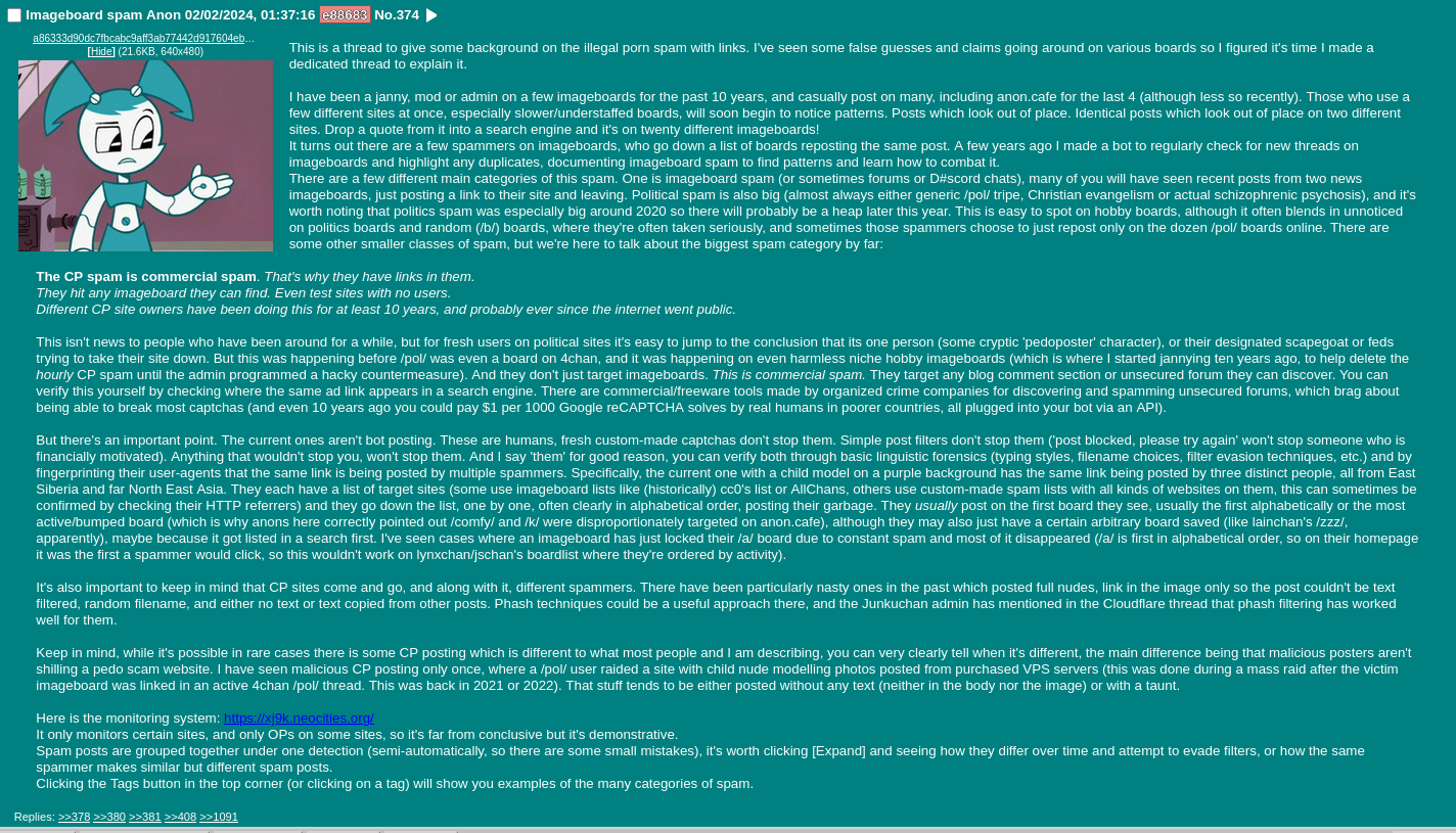 >>278660The automatic cp bot that hits imageboards is just whatever but soyteens spam cp which is usually pretty bad