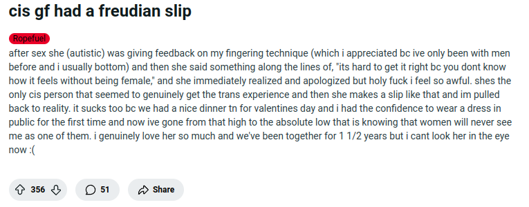>>197434>>197439transfem vagina, visible necrosis, reddit screenshot, remarkably high quality photo
