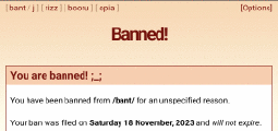 >>6298I meant for the ban to be one hour long wtfwt