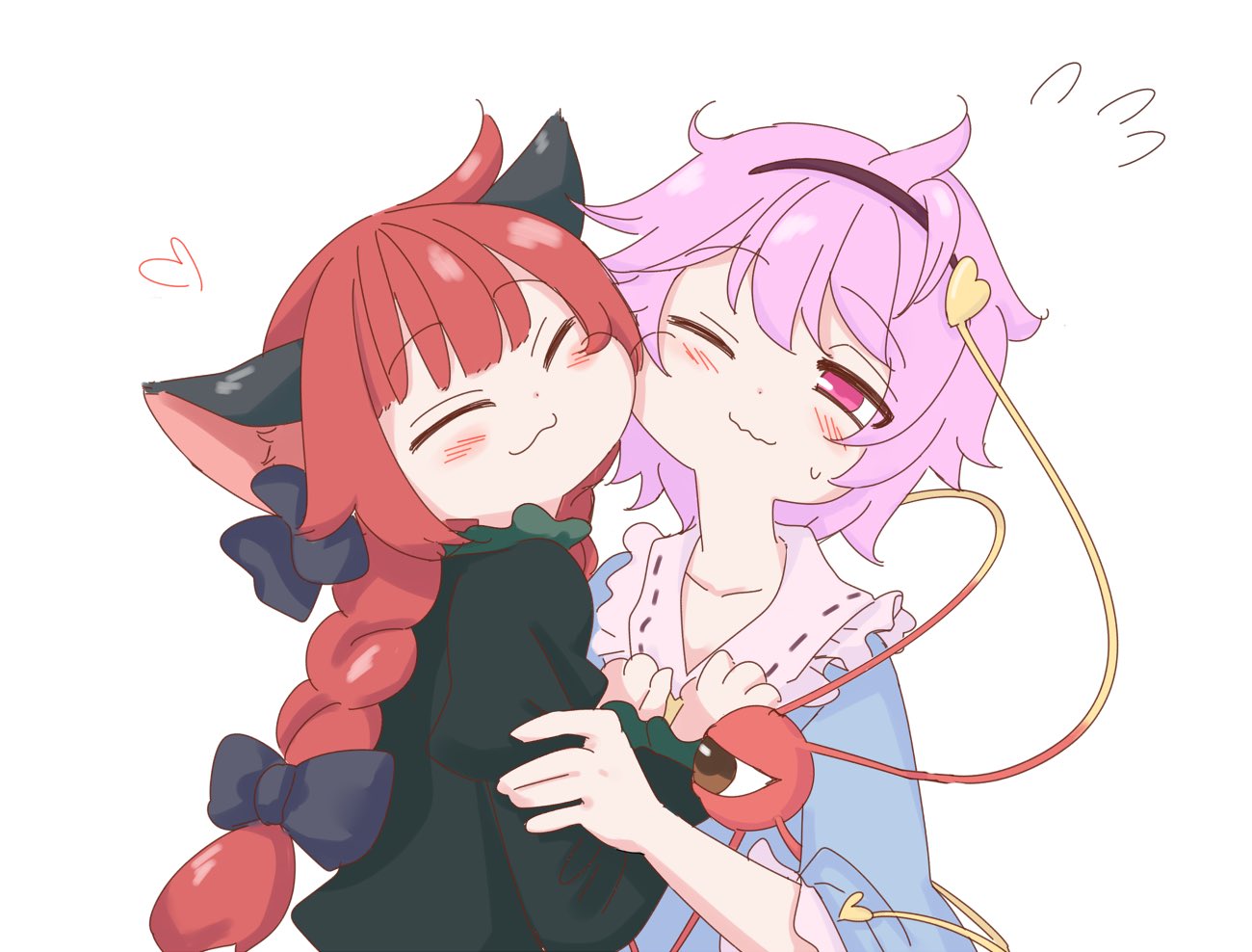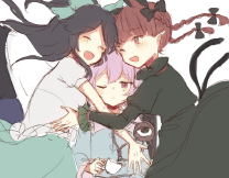 it can't be helped… these things will happen when you two play with each other. it's great that you're such good friends. besides, okuu already forgot about it, so it would be pointless to scold her. does it hurt? here, orin. i'm going to spoil you a bit to make up for it. there, there… feeling better now? come here, lets hug each other for a bit, my cute pets.
